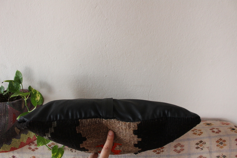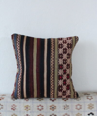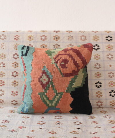 El dokuma kilimden, usta ellerde özenle dikilmiştir. Arkası pamuklu keten kumaş, gizli fermuarlı. Her bir kırlent sadece kılıf olarak gönderilmektedir.