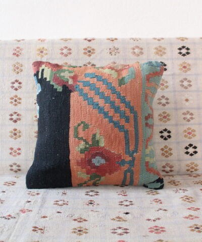 El dokuma kilimden, usta ellerde özenle dikilmiştir. Arkası pamuklu keten kumaş, gizli fermuarlı. Her bir kırlent sadece kılıf olarak gönderilmektedir.