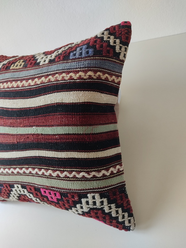 41*41 cm. İnce dokuma kilimden dikilmiş kırlent.