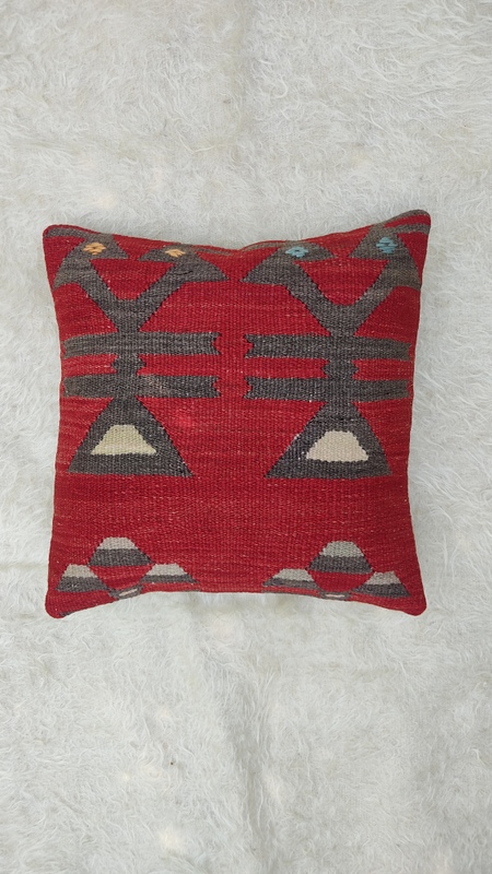 El dokuma kilimden, usta ellerde özenle dikilmiştir. Arkası pamuklu keten kumaş, gizli fermuarlı. Her bir kırlent sadece kılıf olarak gönderilmektedir.