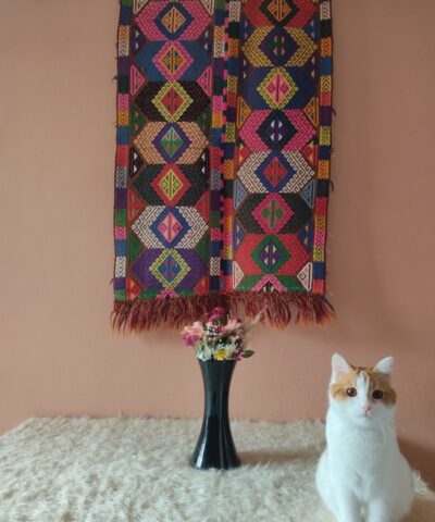 Arka Tarafı ve ön tarafıyla iki yaygı, bir minder seçenekleri ile bereketli bir dokuma.