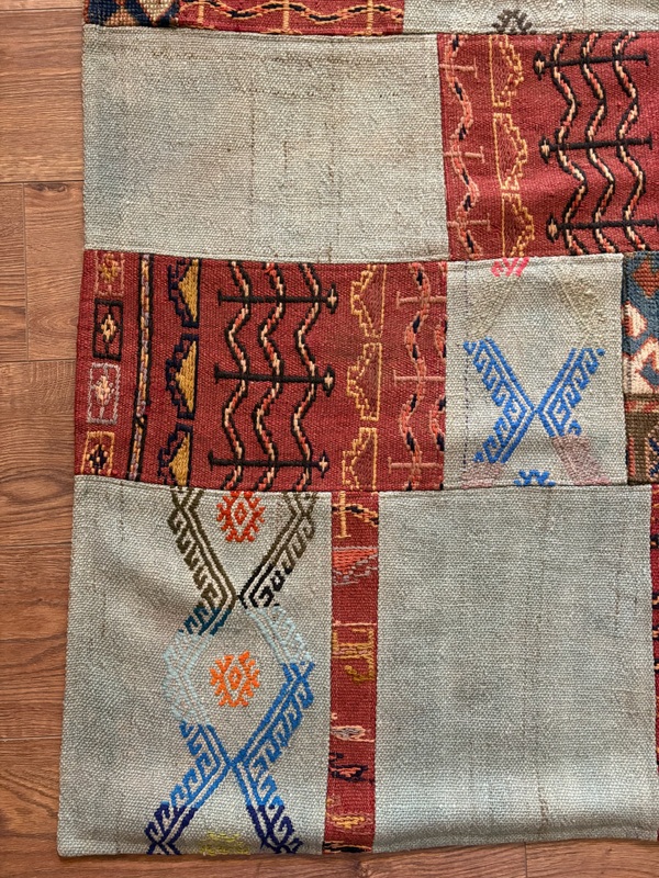 Teknik: El dokuma kilim ve halılarla pathcwork.